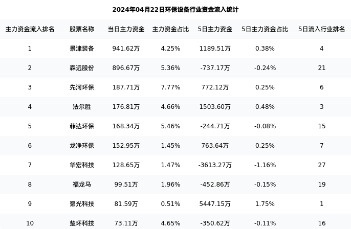 从主力资金流向来看,环保设备行业今日主力资金流入3.28亿元,在所有申万二级行业中排名:56/131。