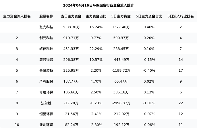 从主力资金流向来看,环保设备行业今日主力资金流入5.60亿元,在所有申万二级行业中排名:37/131。