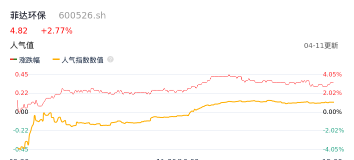 04月11日,菲达环保收报4.82,股价涨幅2.77%,成交金额5208.15万元,换手率1.52%。