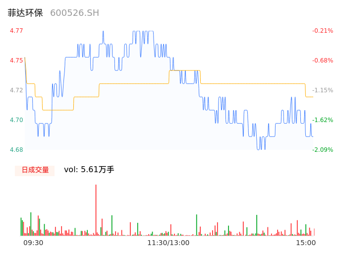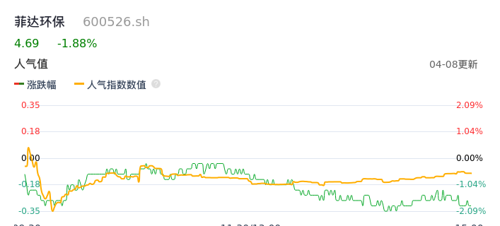 04月08日,菲达环保收报4.69,股价涨幅-1.88%,成交金额2651.73万元,换手率0.79%。