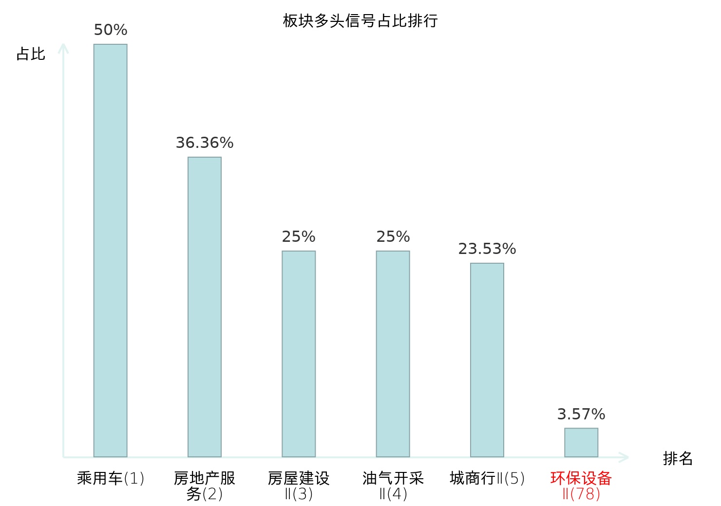 全市场所有行业板块中主力多头信号占比排名中,乘用车板块位居第一。油气开采Ⅱ板块名次提升最快,较昨日上升122位。