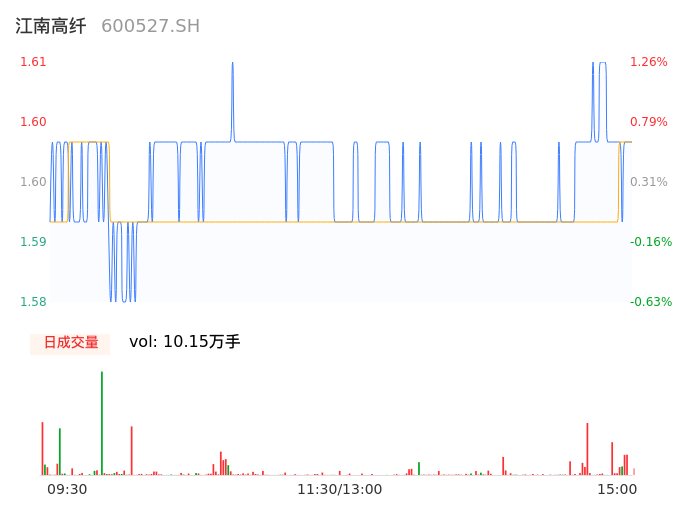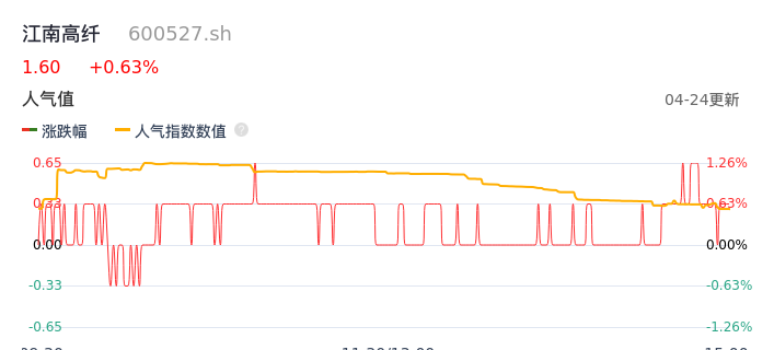 04月24日,江南高纤收报1.60,股价涨幅0.63%,成交金额1618.40万元,换手率0.59%。