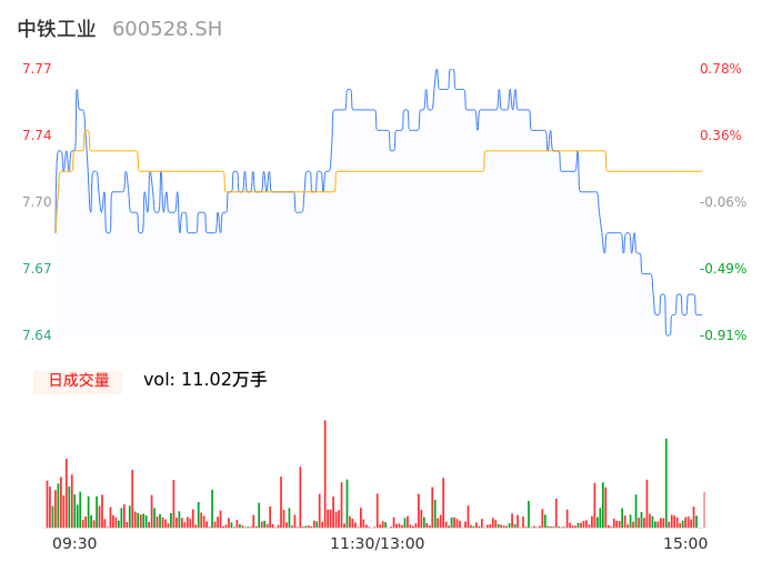 04月12日,中铁工业收报7.66,股价涨幅-0.65%,成交金额8503.33万元,换手率0.50%。