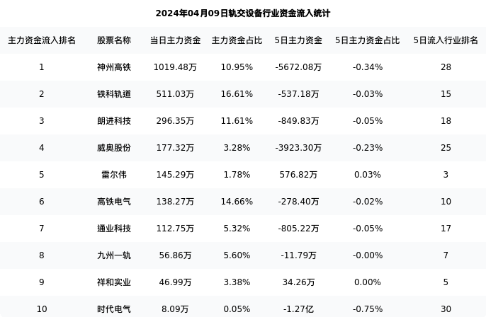从主力资金流向来看,轨交设备行业今日主力资金流入3.82亿元,在所有申万二级行业中排名:49/131。