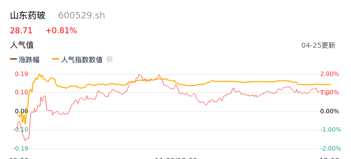 04月25日,山东药玻收报28.71,股价涨幅0.81%,成交金额3.37亿元,换手率1.78%。