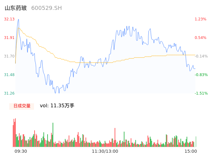 04月16日,山东药玻收报31.54,股价涨幅-0.63%,成交金额3.60亿元,换手率1.71%。
