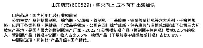 值得注意的是:2024年03月民生证券的李阳分析师,首次发布关于山东药玻的研究报告,标题为:山东药玻(600529):需求向上 成本向下 出海加快。