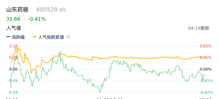 04月19日,山东药玻收报31.66,股价涨幅-0.41%,成交金额1.89亿元,换手率0.90%。