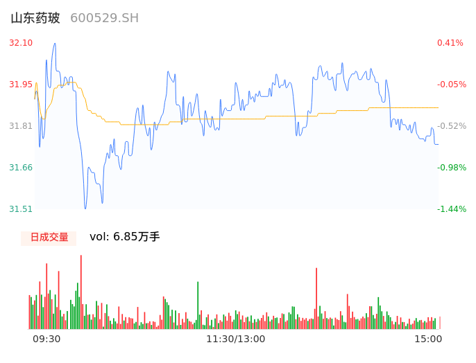 04月18日,山东药玻收报31.79,股价涨幅-0.56%,成交金额2.20亿元,换手率1.04%。
