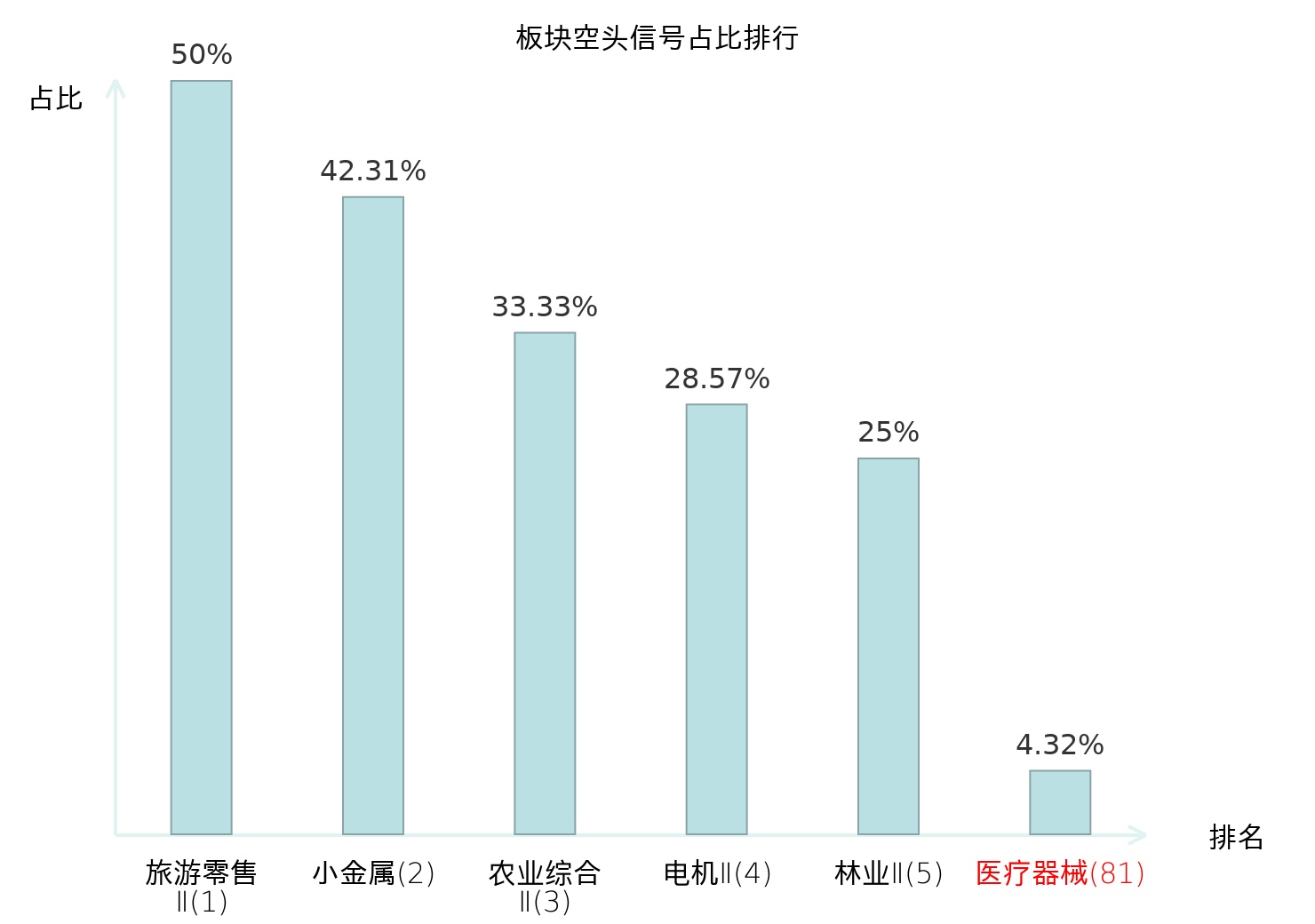 全市场所有行业板块中主力空头信号占比排名中,旅游零售Ⅱ板块位居第一。元件板块名次提升最快,较昨日上升119位。