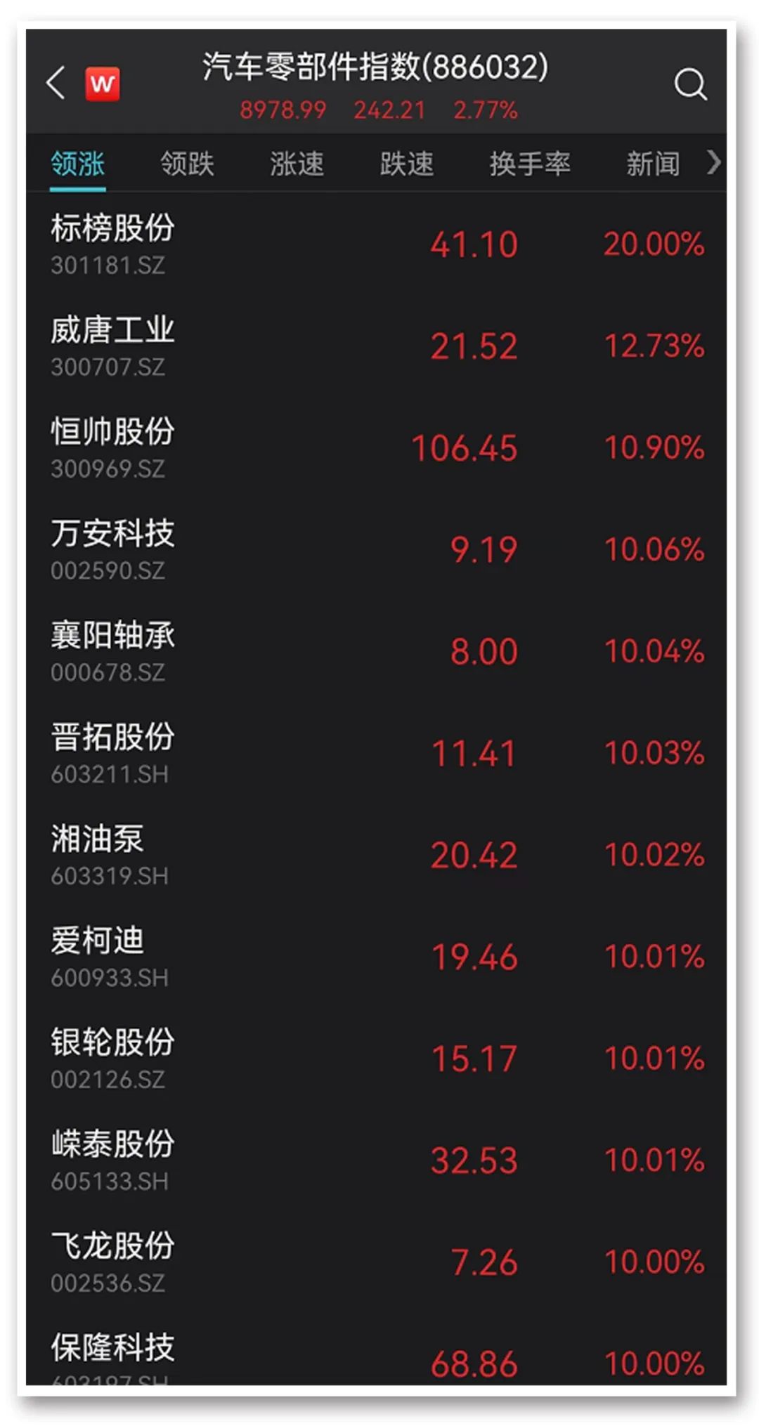 汽车零部件板块上演涨停潮