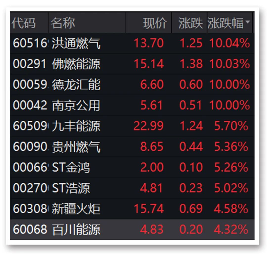燃气板块全天强势