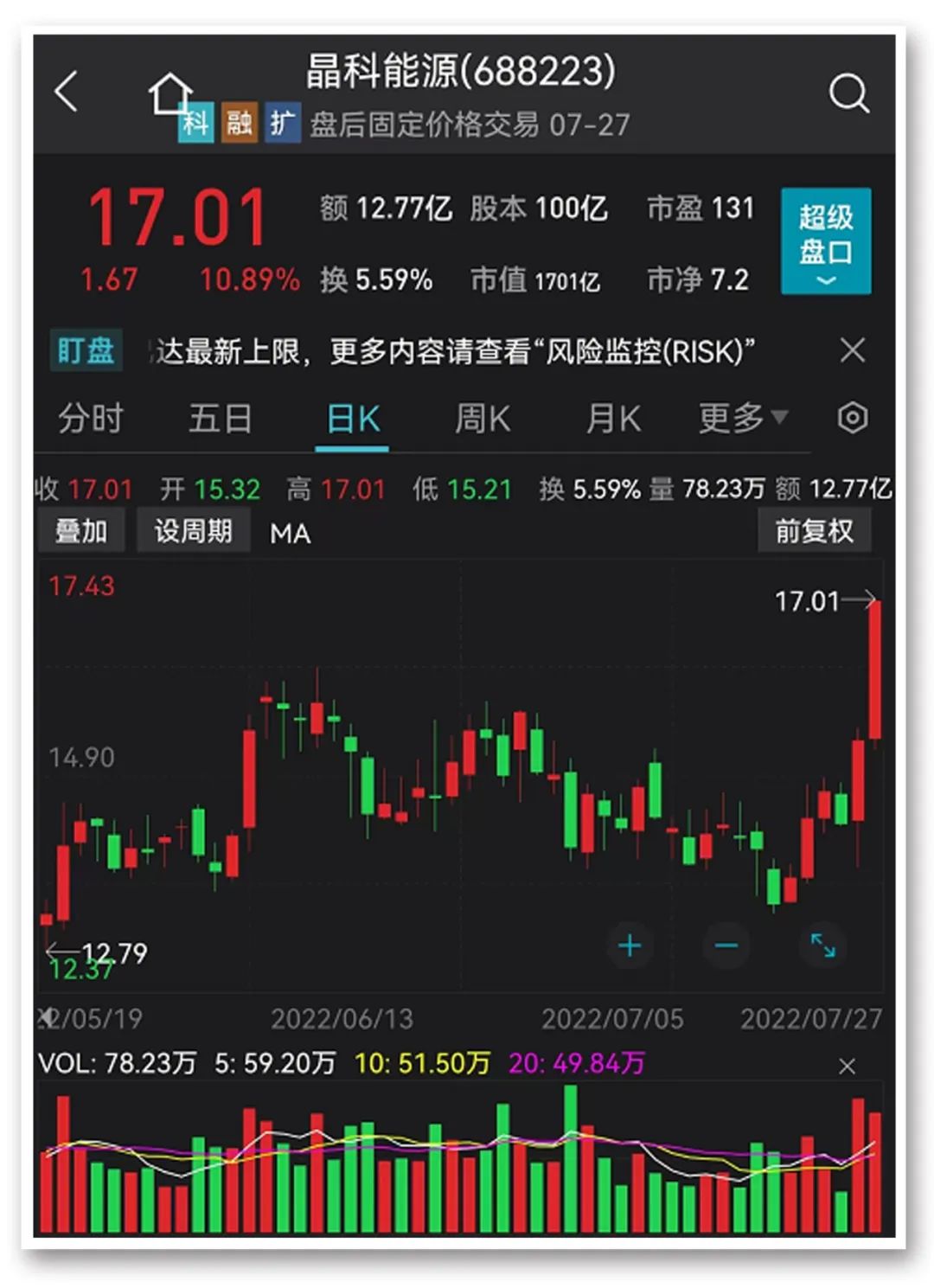 值得一提的是,晶科能源今日收报17.01元/股,创出历史新高。另一光伏巨头天合光能,股价也已逼近前期历史高点。