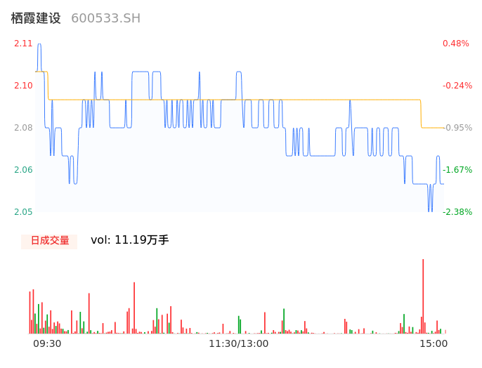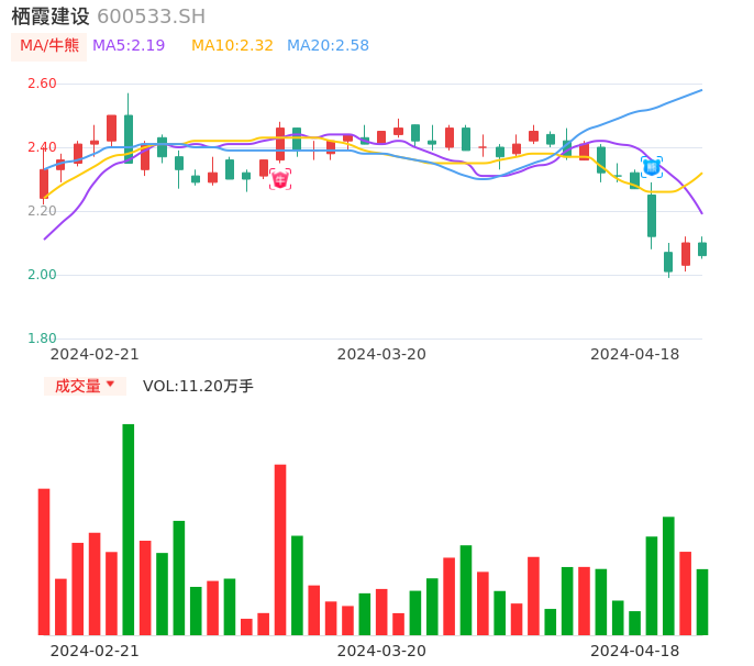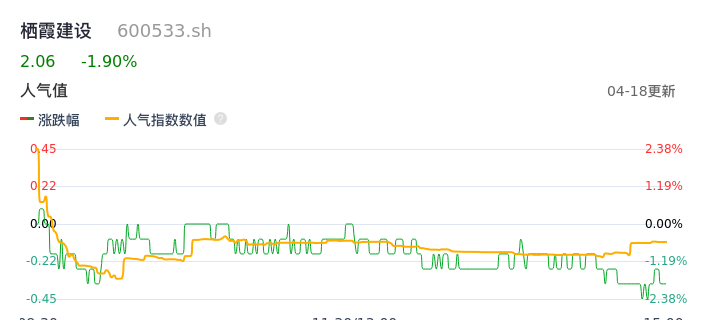 04月18日,栖霞建设收报2.06,股价涨幅-1.90%,成交金额2332.08万元,换手率1.07%。