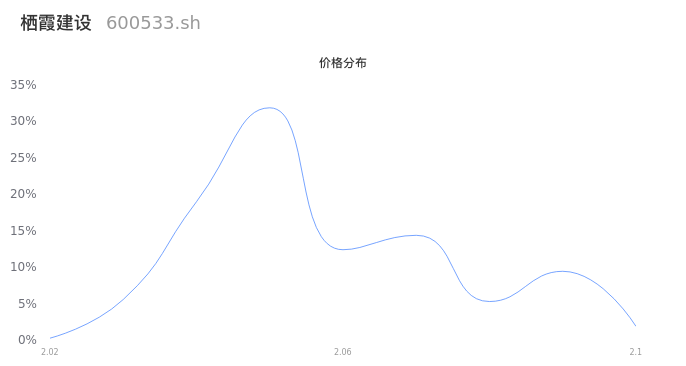 然后我们来看下当日成交的价格分布。经过分析发现,该股票当日成交价格波动低于10个最小波动价位,由于可以参考的样本量非常少,价格分布分析的结果不具有指导意义,下图仅供参考。