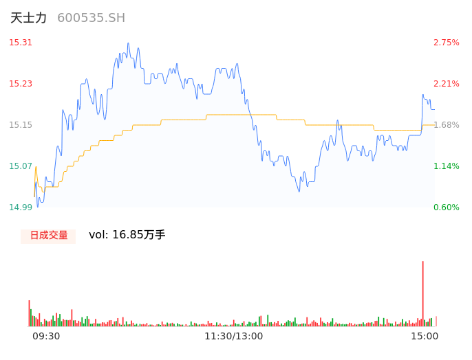 04月17日,天士力收报15.22,股价涨幅2.15%,成交金额2.55亿元,换手率1.13%。