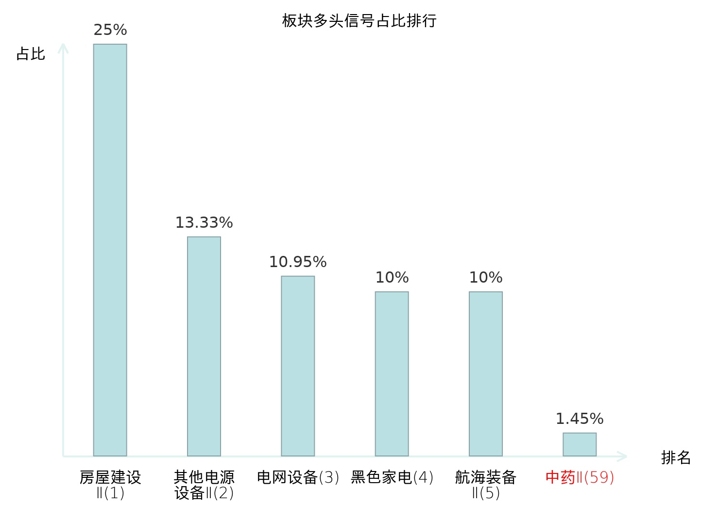全市场所有行业板块中主力多头信号占比排名中,房屋建设Ⅱ板块位居第一。航海装备Ⅱ板块名次提升最快,较昨日上升112位。
