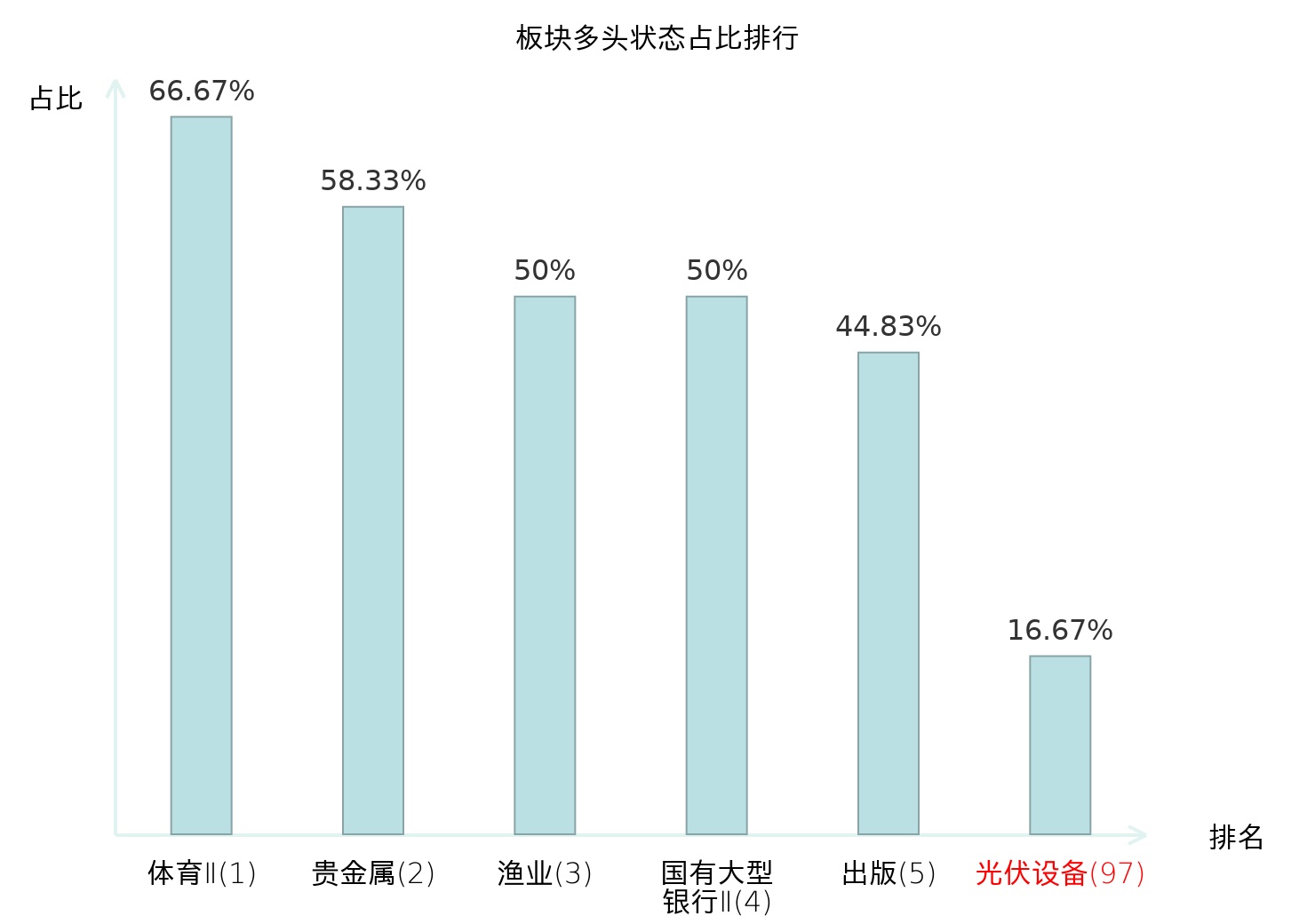 全市场所有行业板块中主力多头状态占比排名中,体育Ⅱ板块位居第一。农业综合Ⅱ板块名次提升最快,较昨日上升113位。