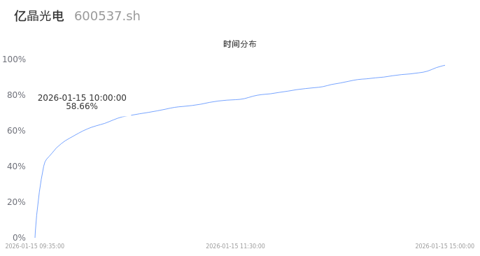 600537亿晶光电2026年01月15日成交19.03万手,成交金额5897.90万,相较昨日缩量40.24万手,换手率1.61%,成交清淡。