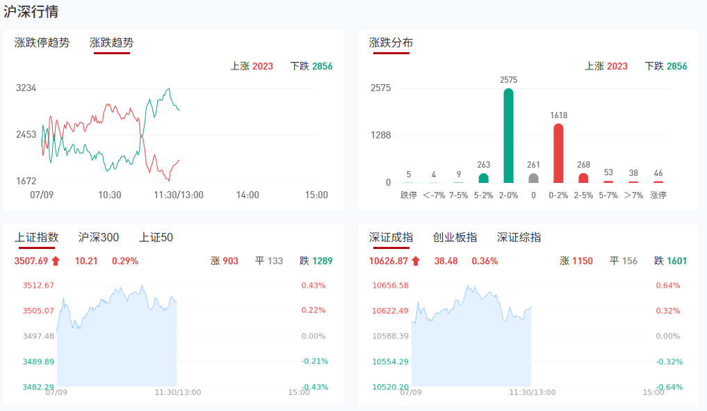 午评:沪指半日涨0.29%站上3500点 大金融股集体走强