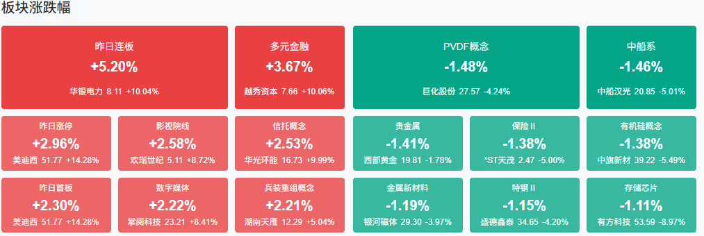 板块方面,多元金融、托育服务、短剧游戏、银行等板块涨幅居前,有机硅、存储芯片、稀土永磁、固态电池等板块跌幅居前。截至收盘,沪指涨0.29%,深成指涨0.36%,创业板指涨0.8%。