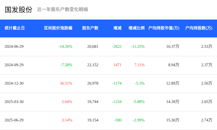 与医药商业行业相比,国发股份的股东户数减少幅度较为明显,户均持股市值增长也高于行业平均水平,显示出该公司在行业内的相对优势。但需注意的是,行业数据缺失使得具体对比存在局限性,仍需关注后续行业动态和公司基本面变化。