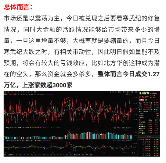 今日主要的市场其实量能还是继续缩量的,除开中午的跟半导体因为小作文的回暖导致的市场上涨带动量能回升之外,市场整体继续缩量,小票与量化票更多的是资金的选择,并不是大逻辑与长线资金的选择,比如北方华创这种直接冲高回落,代表的是资金回暖之后趁着流动性在撤退的走势,所以还是不能掉以轻心