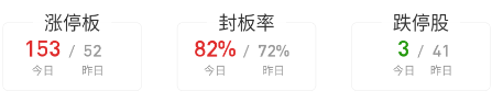 涨停家数这里超过150家,今日算是集体回暖日的一天,9.40涨停家数就超过了20家以上,同时封板率在80%以上,跌停股方面今日算是普涨的一天,跌停股数量只有三个,今日力度还可以,看明日量能延续情况再做决定