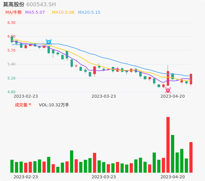 04月20日,莫高股份收报5.19,股价涨幅4.01%,成交金额5234.86万元,换手率3.21%。