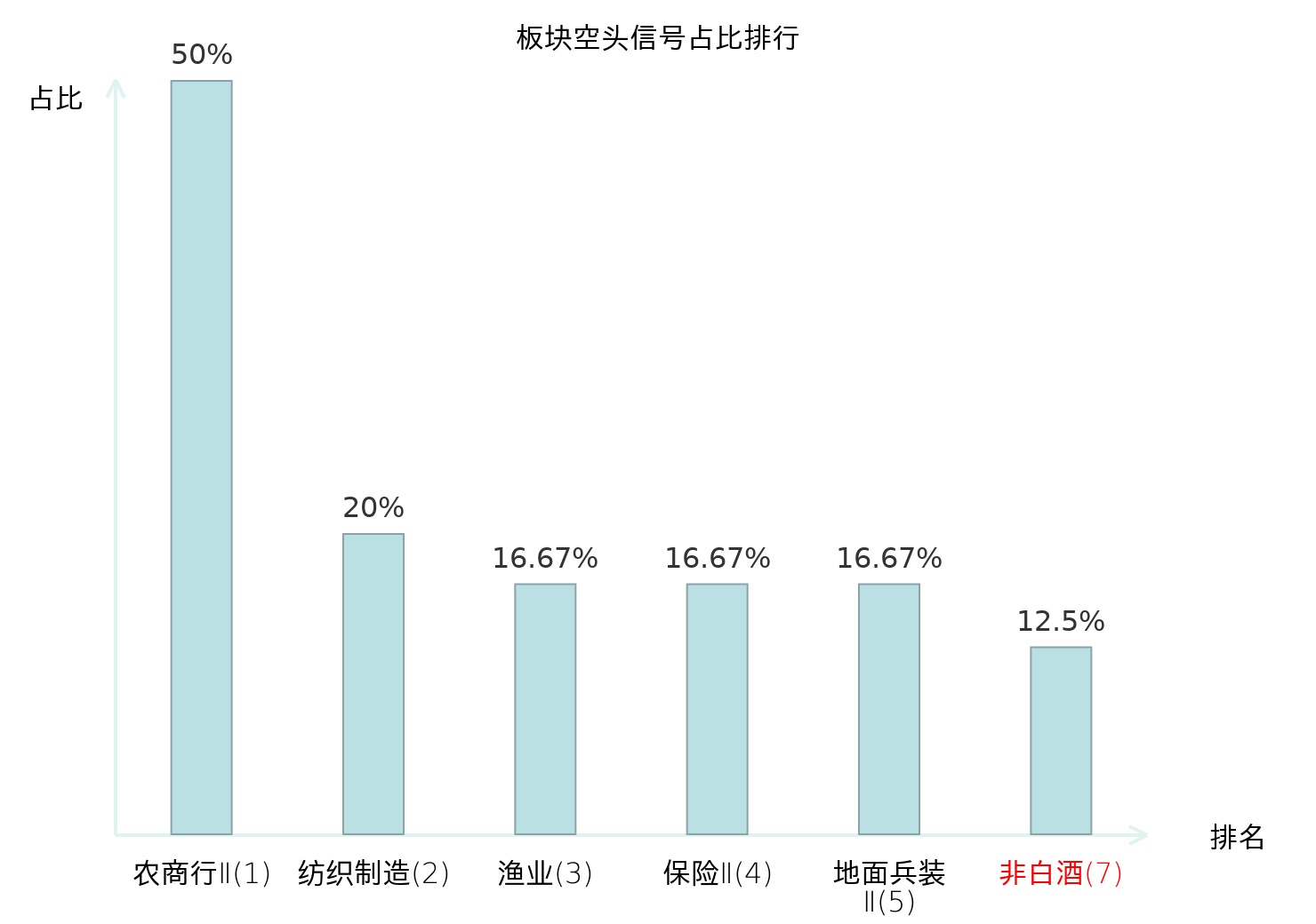 全市场所有行业板块中主力空头信号占比排名中,农商行Ⅱ板块位居第一。生物制品板块名次提升最快,较昨日上升121位。