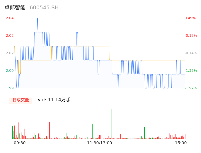 04月25日,卓郎智能收报2.00,股价涨幅-1.48%,成交金额2238.58万元,换手率0.62%。