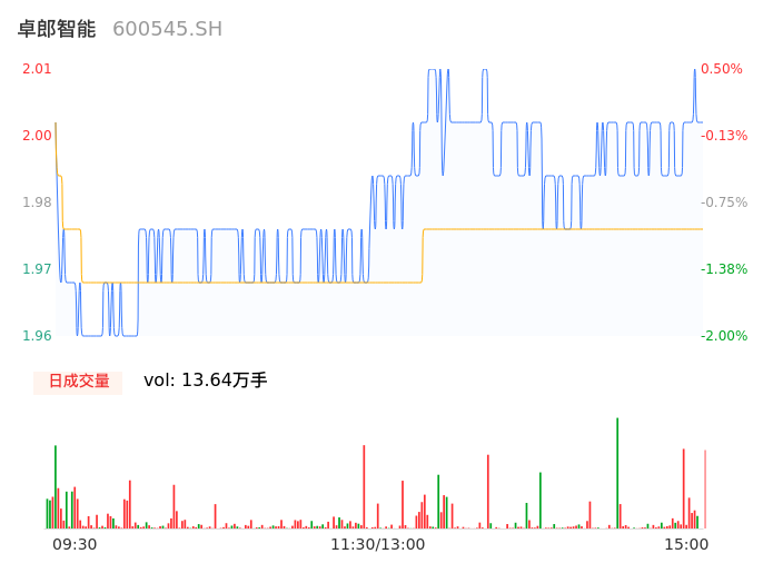 04月26日,卓郎智能收报2.00,股价涨幅0.00%,成交金额2706.83万元,换手率0.76%。