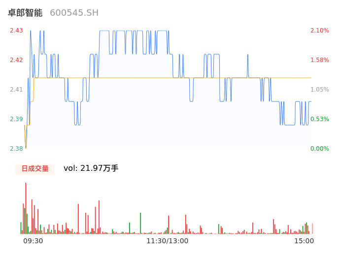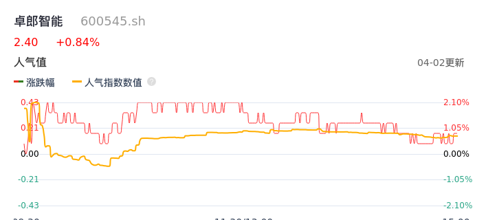 04月02日,卓郎智能收报2.40,股价涨幅0.84%,成交金额5295.84万元,换手率1.23%。