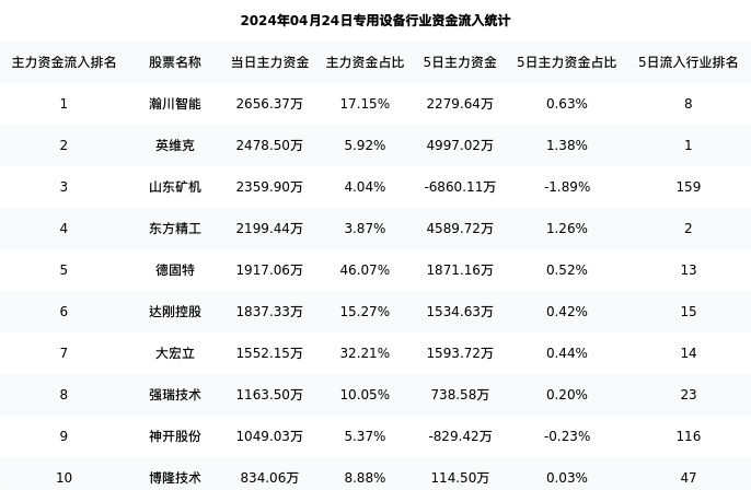 从主力资金流向来看,专用设备行业今日主力资金流入34.52亿元,在所有申万二级行业中排名:75/131。