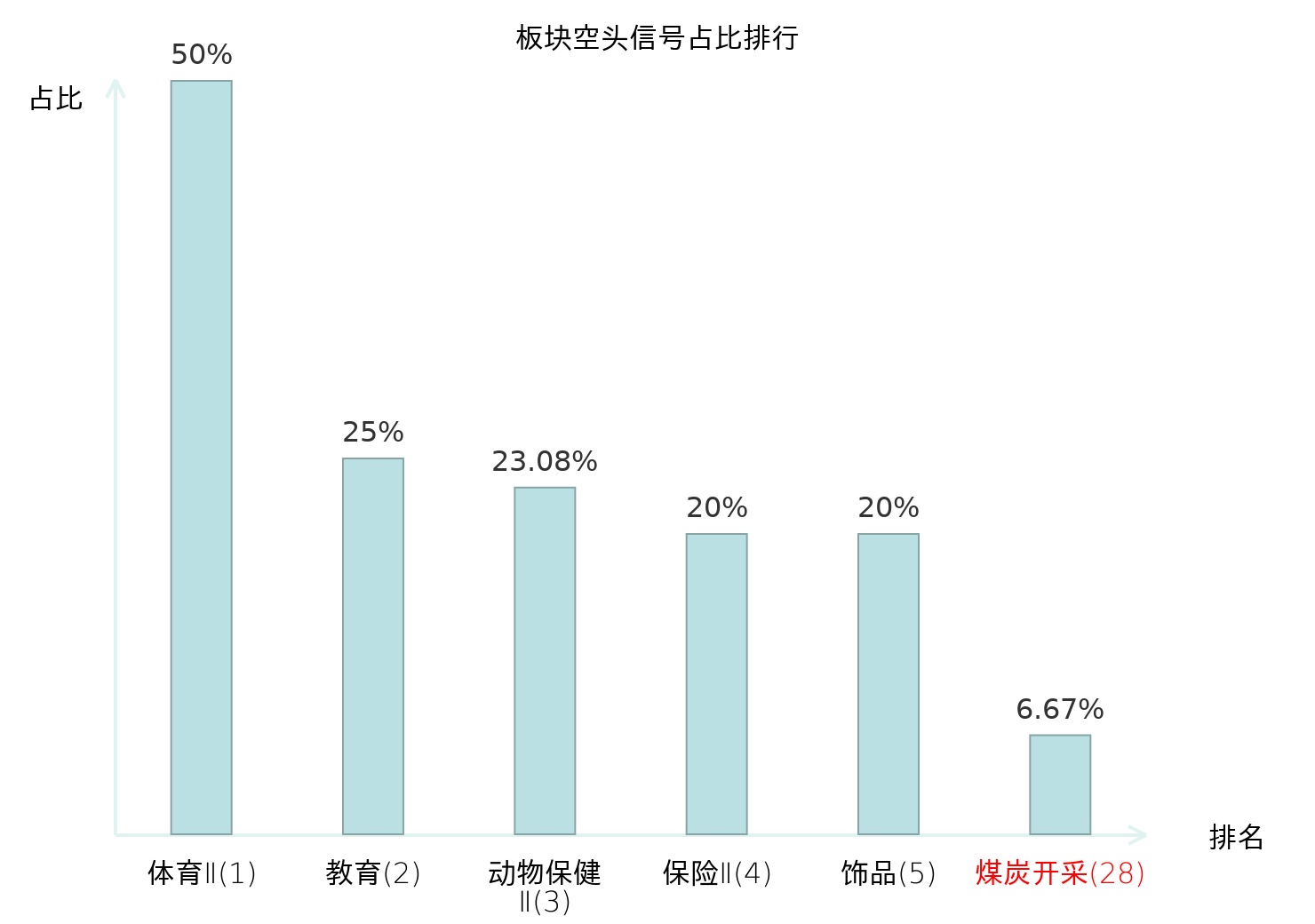全市场所有行业板块中主力空头信号占比排名中,体育Ⅱ板块位居第一。服装家纺板块名次提升最快,较昨日上升115位。