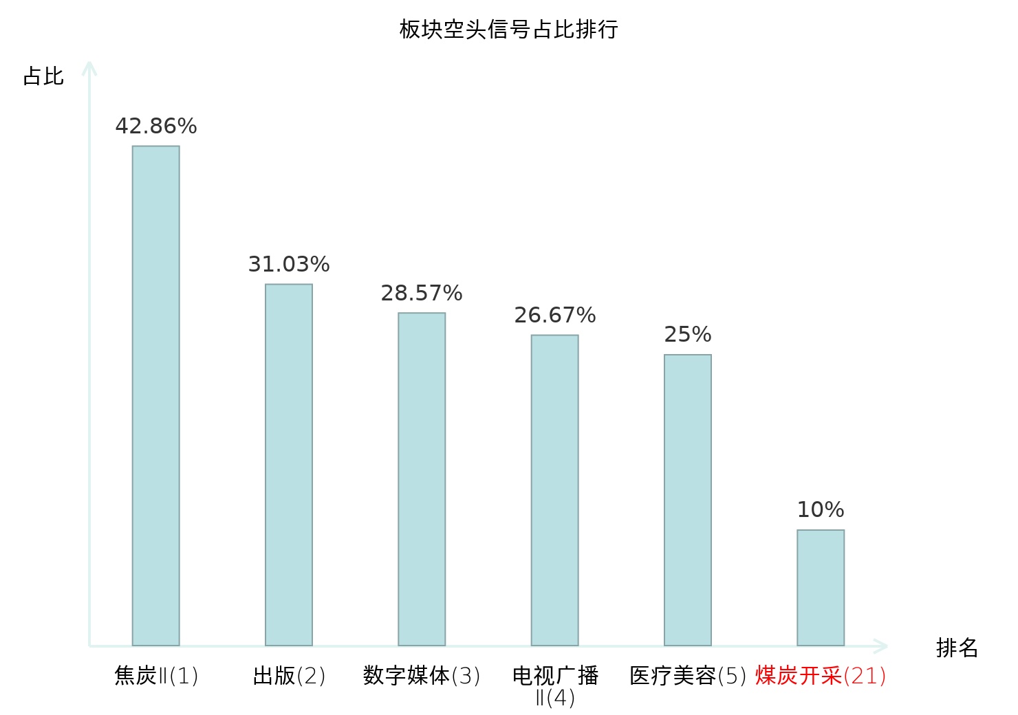 全市场所有行业板块中主力空头信号占比排名中,焦炭Ⅱ板块位居第一。焦炭Ⅱ板块名次提升最快,较昨日上升118位。