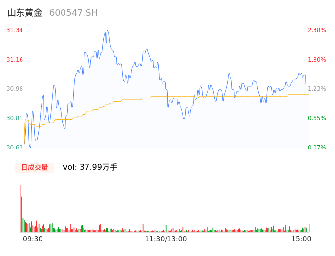 04月17日,山东黄金收报31.03,股价涨幅1.37%,成交金额11.76亿元,换手率1.05%。