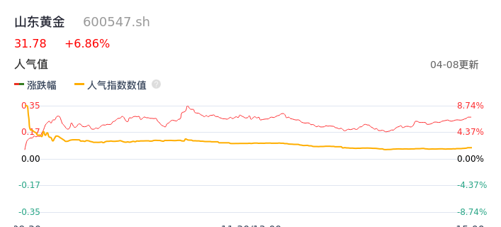 04月08日,山东黄金收报31.78,股价涨幅6.86%,成交金额23.35亿元,换手率2.06%。
