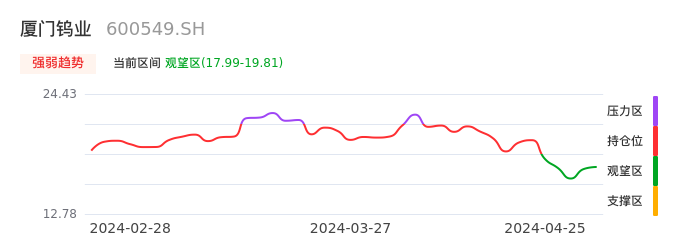 值得注意的是:2024年04月民生证券的邱祖学/孙二春分析师,首次发布关于厦门钨业的研究报告,标题为:厦门钨业(600549):光伏钨丝持续放量 钨价走高增厚矿端利润。