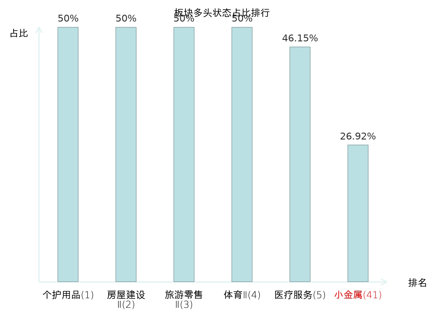 全市场所有行业板块中主力多头状态占比排名中,个护用品板块位居第一。影视院线板块名次提升最快,较昨日上升56位。