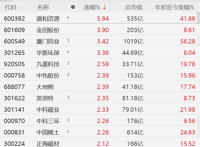 A股稀土概念股普涨,盛和资源涨近6%