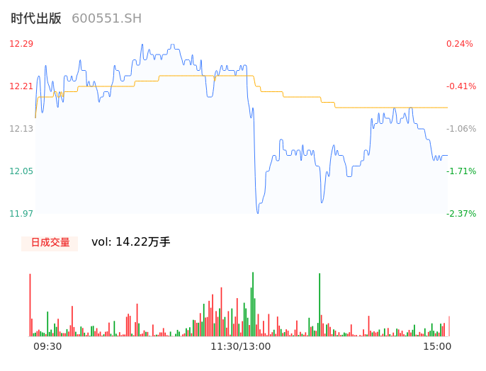 04月26日,时代出版收报12.08,股价涨幅-1.47%,成交金额1.73亿元,换手率2.94%。