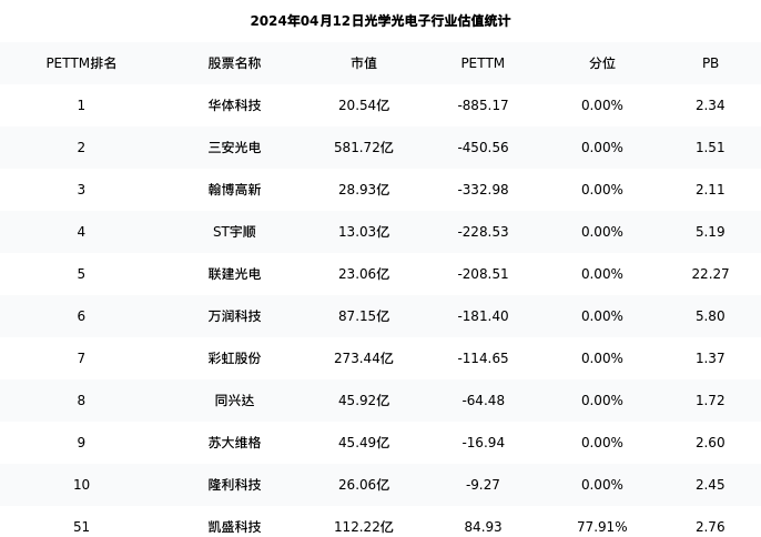 从估值角度看:凯盛科技最新市盈率PETTM为84.93,在行业内排名42/93,处于77.91分位。