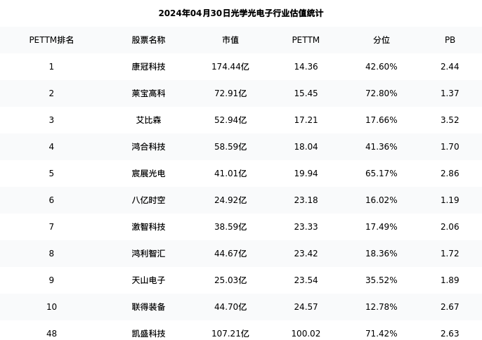 从估值角度看:凯盛科技最新市盈率PETTM为100.02,在行业内排名48/93,处于71.42分位。