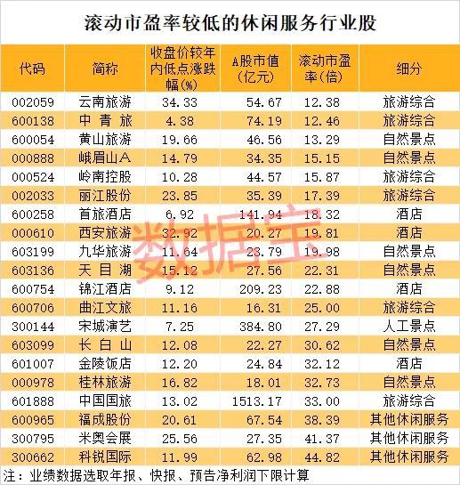 新冠肺炎疫情期间,旅游和餐饮业消费大受影响,休闲服务板块在春节后走势低迷,行业估值也进一步降低。据粗略统计,目前休闲服务行业市盈率为29.54倍,已经处于历史底部区间。行业内有9股滚动市盈率不足20倍,分别包括云南旅游、中青旅、黄山旅游、峨眉山A、岭南控股、丽江股份等。