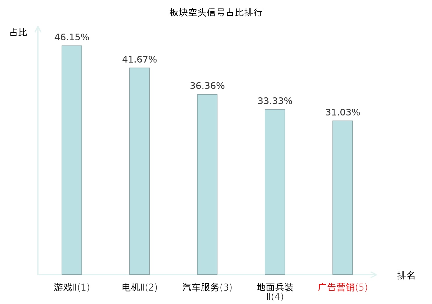 全市场所有行业板块中主力空头信号占比排名中,游戏Ⅱ板块位居第一。光学光电子板块名次提升最快,较昨日上升103位。