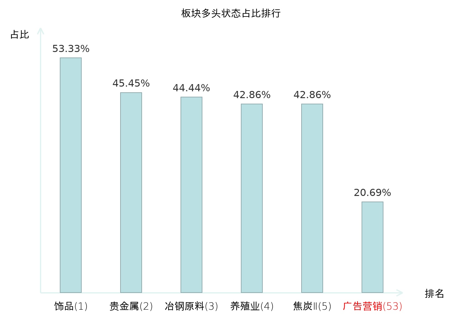 从主力宝信号数据分析,天下秀所属的广告营销板块中共有6只股票处于主力多头状态,主力多头状态占比在全行业中排名第53位,较昨日下降了24位。排名靠前表明主力对于该板块的整体看多意愿较强,而排名的下降可能反映了主力对该板块态度的一些微调。全市场所有行业板块中,饰品板块的主力多头状态占比最高,位居第一;非金属材料Ⅱ板块名次提升最快,较昨日上升了58位。这些变动揭示了不同行业间主力资金动向的趋势,为投资者提供了关于市场情绪和潜在投资机会的重要线索。