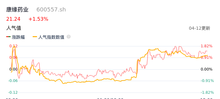04月12日,康缘药业收报21.24,股价涨幅1.53%,成交金额2.22亿元,换手率1.82%。