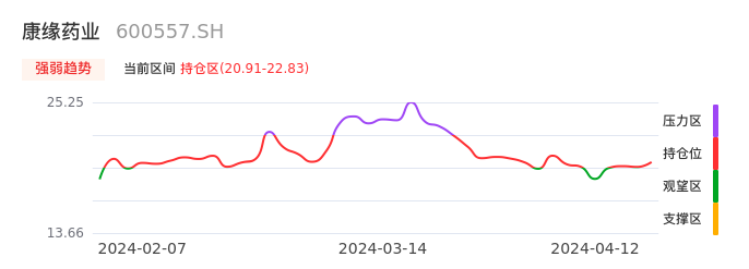 我们来看一下该股的九方特色指标强弱趋势的情况:康缘药业近日从观望区上穿到持仓区。股价短期站稳多头区域,上升动能仍较为充足,可积极关注。后续重点关注上方压力位:22.83元是否能突破上攻。