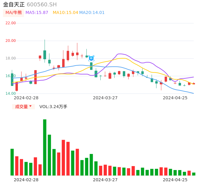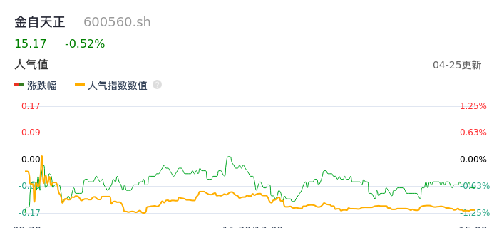 04月25日,金自天正收报15.17,股价涨幅-0.52%,成交金额4914.57万元,换手率1.45%。